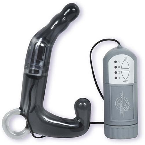 Finally, a pleasure wand designed specifically for a man! This two in one Men's Pleasure Wand massages the scrotum and balls while stimulating the prostate. Get off like never before with the help of this truly magic wand. One of the most uniquely innovative men's toys we've come across! This pleasure wand is shaped for maximum pleasure without taking up too much space. A remote pack allows you to cycle through four speed settings, the last of which is quite strong, and these vibes are conducted directly to the prostate and testicles through the cleverly outlined shaft; a rounded crook at the base massages your balls as the longer, curved and slightly bumpy other end does the same for your prostate. So if you've already discovered the joys of prostate stimulation, or if you're just curious, this Men's pleasure wand makes a great way to stimulate your prostate and scrotum simultaneously for amazing explosive orgasms! Length: 5" Insertable length: 4 1/4" Circumference: 3"