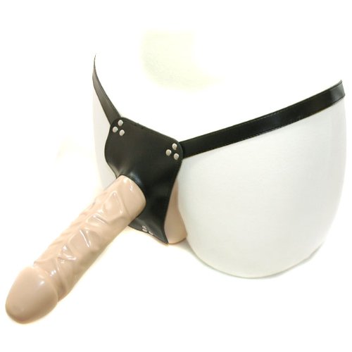 - This sexy strap-on dildo is the perfect way to take control in the bedroom. The leather harness easily adjusts to fit most sizes, while the dong comfortably stays in place. Your partner will love the thickness and life-like feel of the dong and you'll love the results.