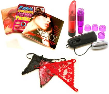 - Be your own Prophet of Pleasure. Enhance the Romance and Sensuality in your life. Lingerie and Sex Toys are Purchased and used worldwide by a wide range of open minded sexual people. Try it on for Sighs!- Add a little BUZZ to your lingerie dreams. Kit Includes the following: Three Thong Panties, Three Edible Underwear, Lady Finger Vibrator, Egg Vibrator, and Mini-Mite Vibrator.